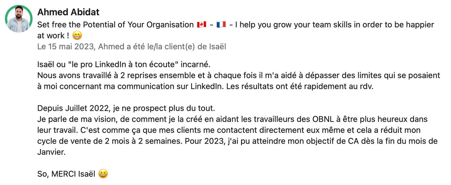 Si tu es entrepreneur.e, dirigeant.e ou travailleur.e autonome et que ton offre s’adresse aux entreprises, ta clientèle cible se trouve définitivement sur LinkedIn!Aujourd'hui, il n'existe qu'une seule plateforme spécialisée en vente B2B (entreprise à entreprise) et c'est LinkedIn. Quand on va sur LinkedIn, c'est dans l'intention de faire des affaires, de voir des fournisseurs potentiels... pas de visionner des vidéos de chats.Communiquer sur LinkedIn, c'est mettre toutes les chances de ton côté pour te faire voir par des entreprises qui auraient besoin de tes services!Ta clientèle cible est peut-être sur Facebook ou Instagram, mais elle est assurément sur LinkedIn pour faire de la business et engager des pros comme toi!